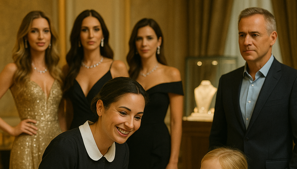 Mramorni salon blistao je kao da se svjetlost može polirati. Vitrine s nakitom formirale su sjajne otoke, svilene haljine klizile su pod reflektorima, a štikle su otkucavale vlastiti sat. U tom koreografiranom sjaju mala Amelia stajala je mirno, prstom preko šava haljinice, kao da provjerava da li sve stoji na mjestu. Nije je očaravao sjaj, ni miris skupog parfema, ni šapat PR-asistentica. Gledala je prema kućnoj pomoćnici na rubu kadra – ženi u jednostavnoj crnini i bijeloj pregači koja je diskretno podizala čaše i smirivala stolnjake. Clara.