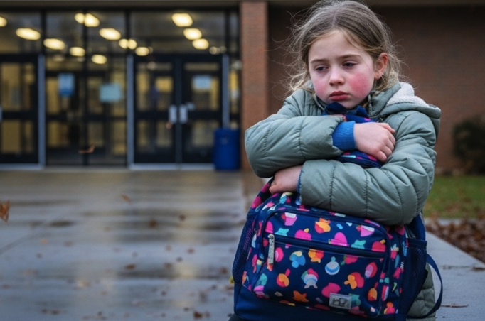 Kada je majka konačno stigla do škole, zatekla je prizor koji se urezao u sjećanje. Mala Lily, blijeda i iscrpljena, sjedila je na betonskoj klupi ispred škole. Vjetar je nosio hladnoću kasnog februara, a ona je grlila ruksak kao da je jedina zaštita od svijeta.