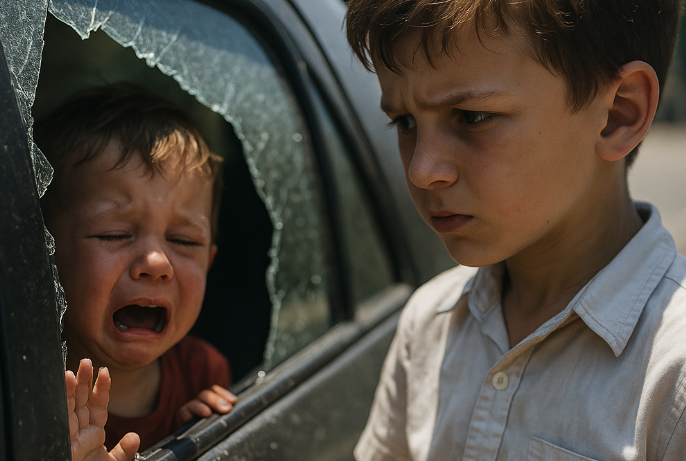 U unutrašnjosti automobila, na suvozačevom mjestu, sjedilo je dijete. Možda tri godine staro. Lice mu je bilo crveno, suze su mu se slivale niz obraze, a usne su drhtale. Plakalo je, pokušavalo da dozove nekoga, udaralo ručicama po zatvorenom prozoru.
