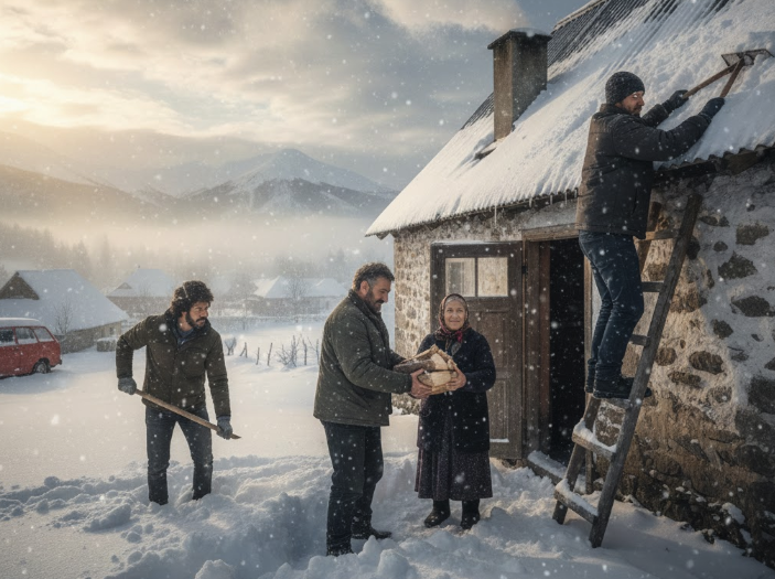 Kada su konačno probili put do vrata, baka Mara ih je dočekala sa nevericom u očima. Marko je nosio naramak bukovine, Amir torbu punu svežeg hleba i lekova, a Dragan je već počeo da čisti sneg sa krova kako se ne bi urušio pod težinom leda.
